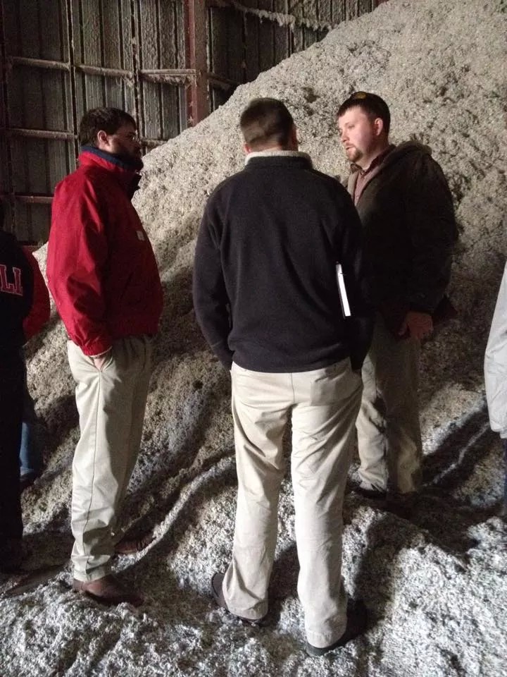 We drove up the lane of the Commonwealth Cotton Gin flanked by modules on one side and the newer round bales of cotton on the other.  Johnny Parker, cotton agronomist, met us outside the gin.  We were full of questions since this was the first trip to a gin for most of the group.  Johnny explained the process from start to finish.