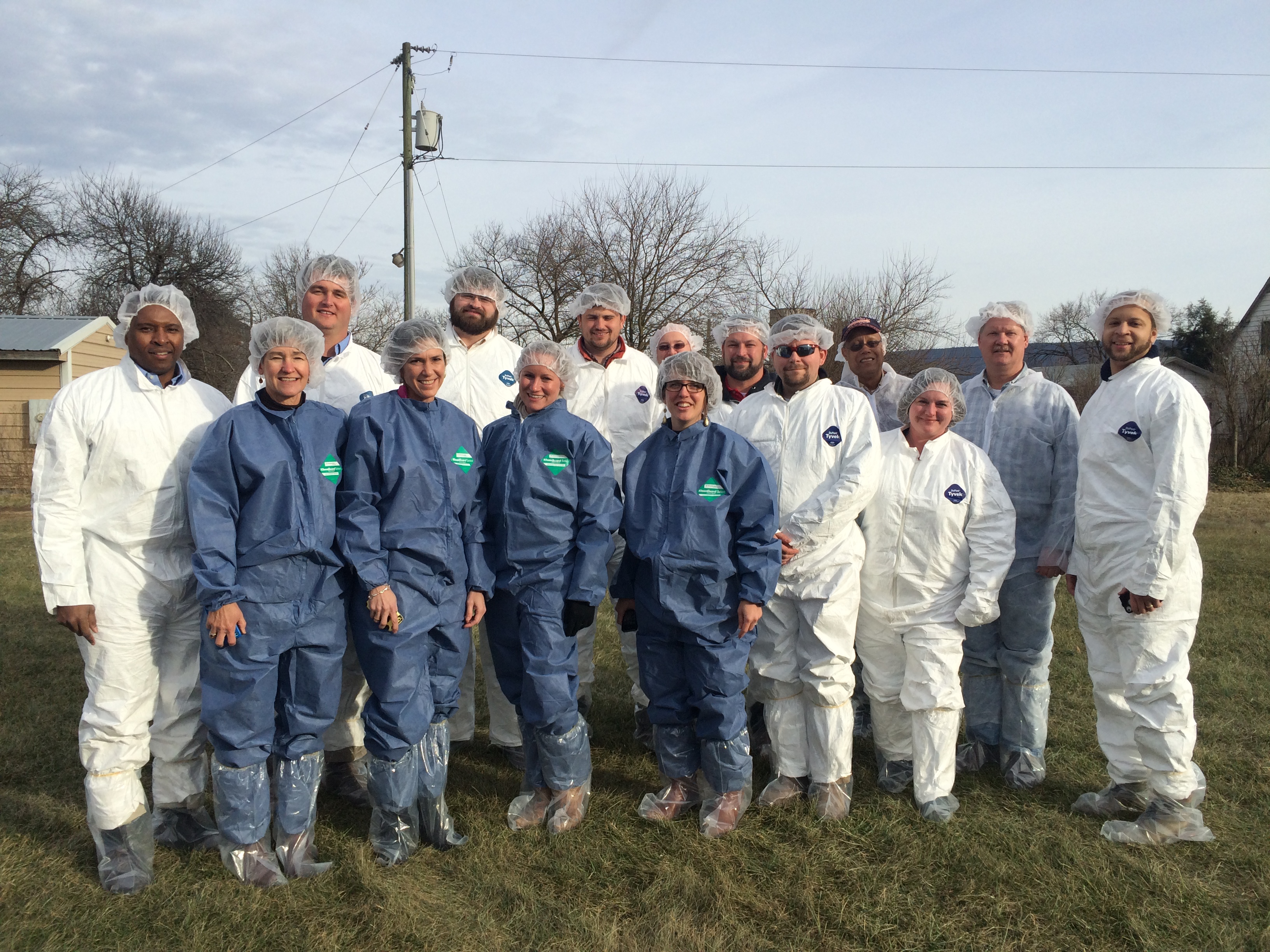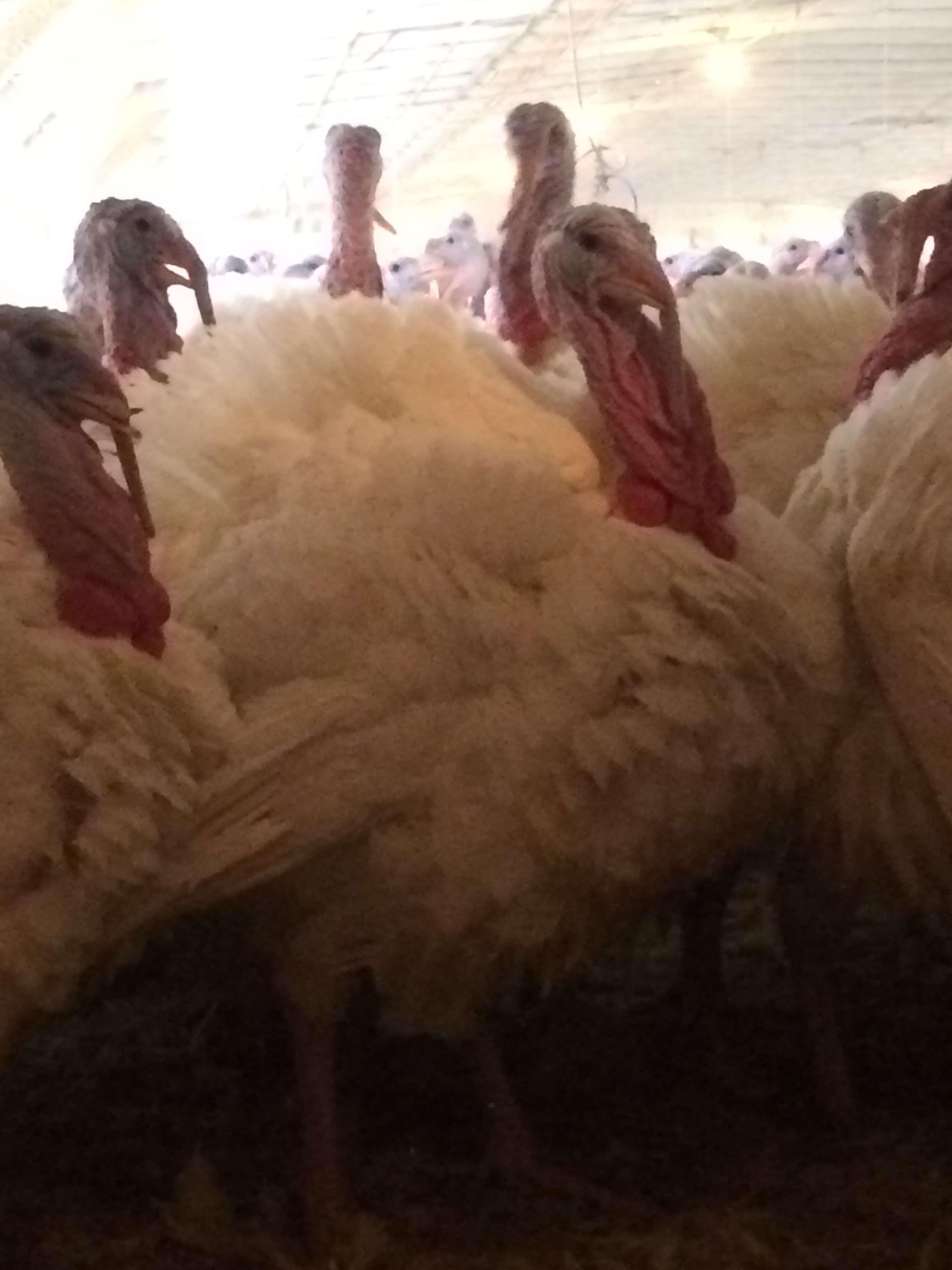 You will notice in our pictures we are dressed like a HAZMAT team. This is part of the biosecurity that is vital to remain a NAU grower. We can all carry disease on our clothes, shoes, and person, thus growers must be vigilant to cleanliness, and restricting access to the farms. The houses have two sides, one side receives the starter birds, arriving at 1 day old, where they are kept warm and fed. As they begin to grow, they move to the other side of the house, where they freely walk around the house, eating and growing, and often producing every Hokie’s favorite gobble sound, reminding us all Virginia’s best football program. Ultimately, these toms grow to about 40 pounds, before they go off to make American’s most popular sandwich.