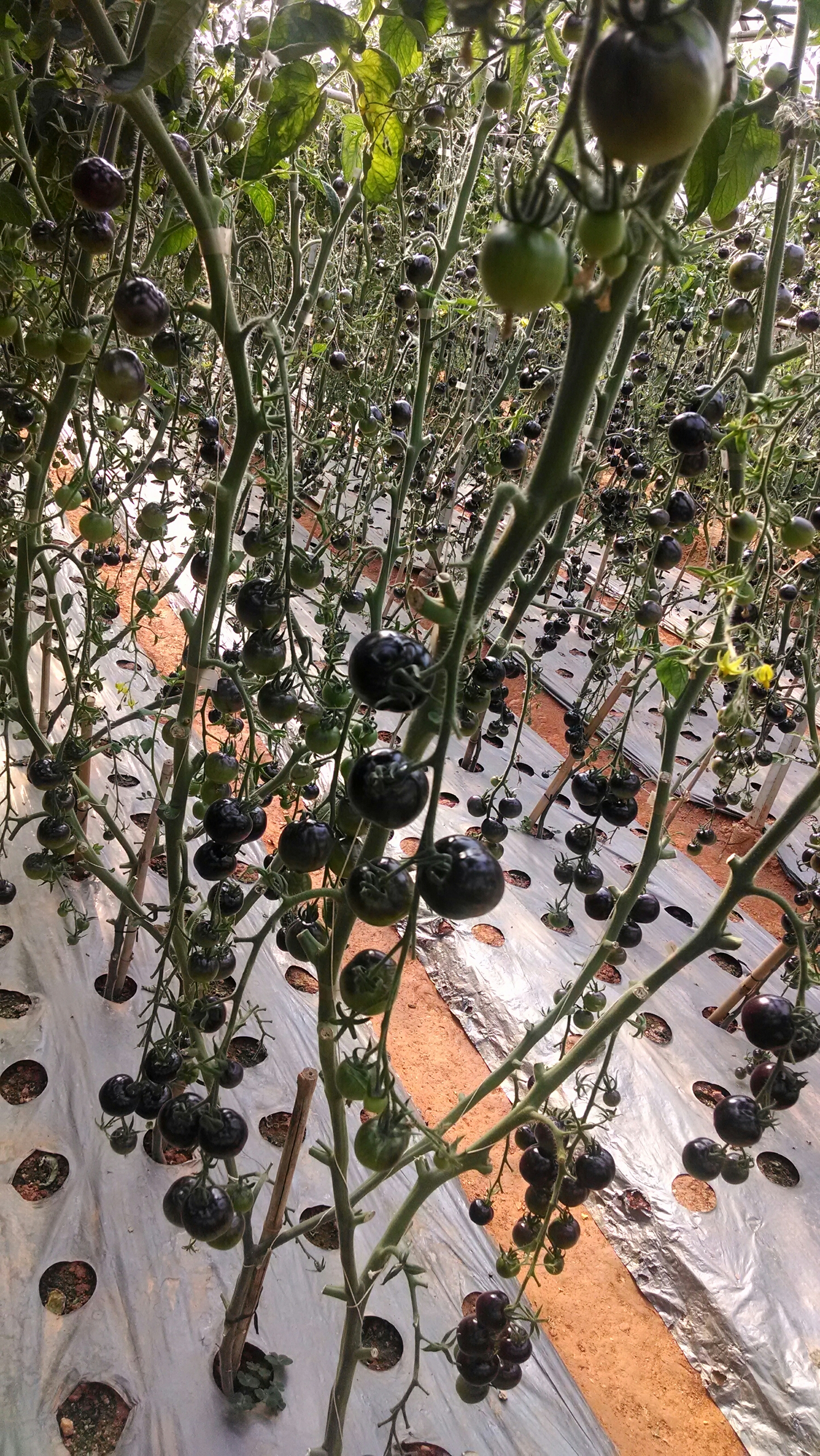 We headed to a greenhouse next. It was just one greenhouse in a sea of mix matched greenhouses of different sizes and with different crops inside. The one we went into grew black tomatoes.