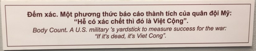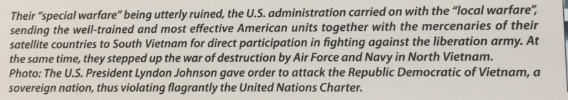 In the War Remnants Museum, it is easy to take notice of symblism, key words, and punctuation that influence how you perceive the picture. For instance, the North Vietcong Army (VC) is referred to as the “liberation” forces. Never thought of it that way – American history books never said we were an “occupying force.” The government of South Vietnam – “puppet government.” Troops that fought for the South Vietnamese Army – “puppet troops.” Lot’s of references to “America’s Aggression,” the number of bombs, guns, troops, tanks, bullets, etc. They even do a pretty str0ng job using words of American soldiers and politicians to tell the story. It’s a little different than the version we often hear in our text books.