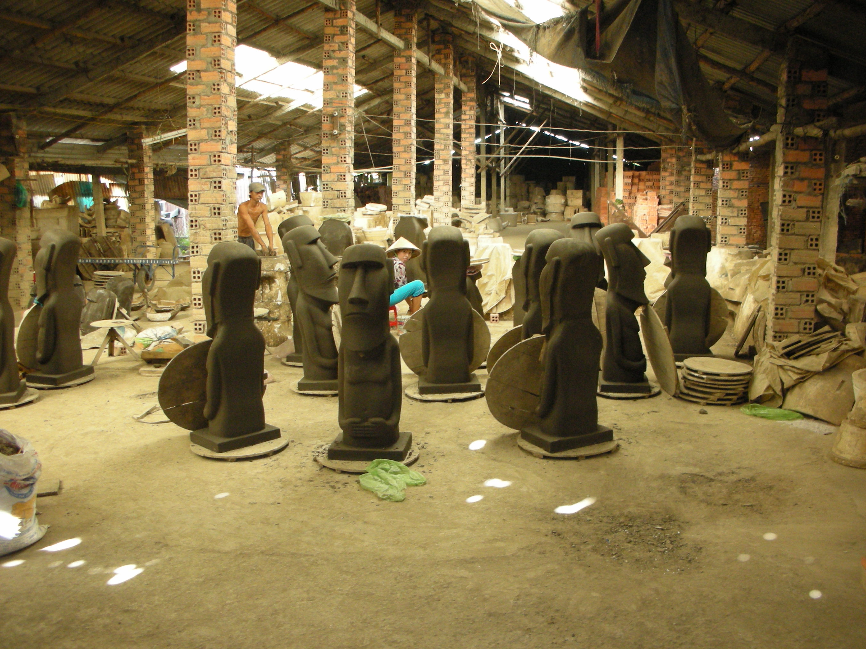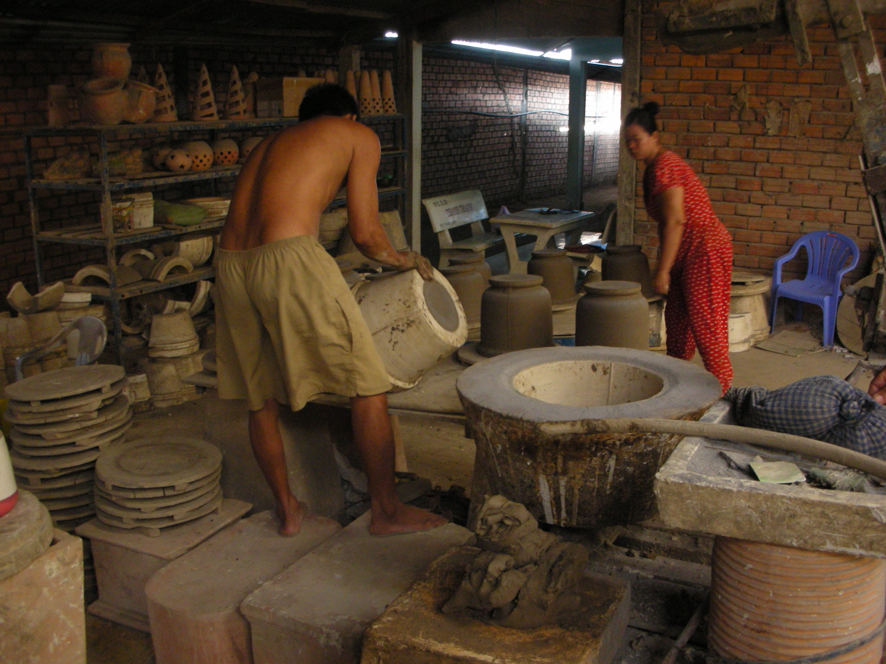Our first stop today was to a brick kiln where the locals were dredging sand and mud from the river and working it into molds to form clay pottery. They were making clay pots and figures that would be hardened in the kiln and then sold or exported to customers. It was almost all hand work and they were very proud of their potteries.