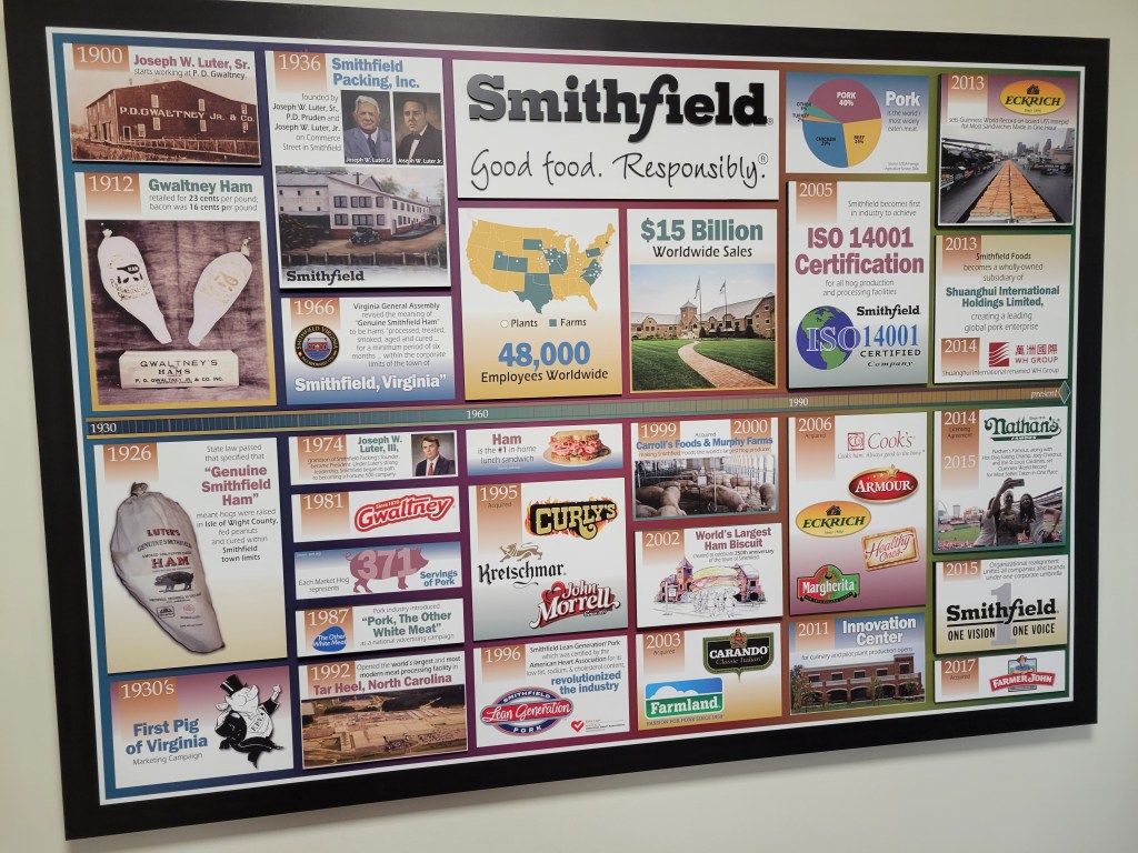 I haven’t mentioned Smithfield Foods yet and for me, that was the most fascinating and interesting visit. I like science, especially if it involves animals and agriculture! Every part of the pig is utilized for industry use and the most interesting to me was the Heprin Sodium from the intestines, which is an anti-coagulant used in needles, catheters and other medicinal purposes. One extremely interesting project Smithfield is working on is turning manure into energy to power homes! That is recycling at its best!