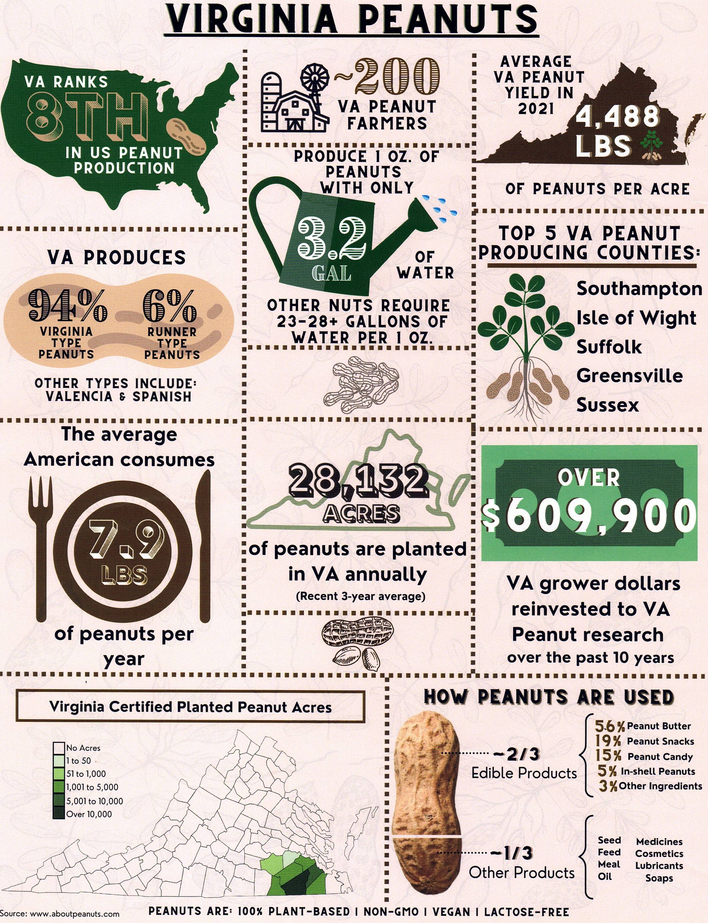 Did you know that there is a “Virginia type peanut”? And that all the peanuts sold in ballparks across the United States are these types of peanuts? And how fascinating to know they are all grown in the Eastern Shore region of VA! Additionally, the peanut pod is NOT the root of the plant….but grows off of what’s called a peg after the peg submerges back underground from the stem of the leaflet.
