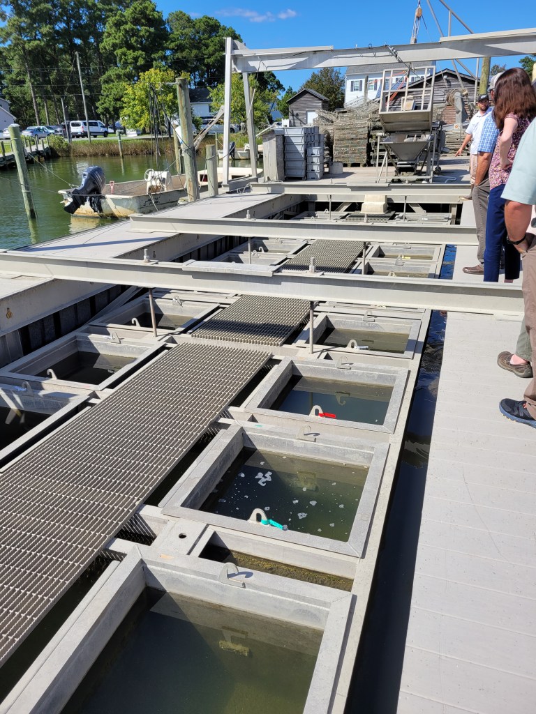 Visiting the Northern Neck was certainly an eye opening experience for me. When I think of farming, all the traditional “on-land” practices come to mind. However, in this part of the state, farming methods include “in-water”! Oyster farming is a thing, and a very delicate process at that. I had no idea it took about 2 years to produce an oyster ready for consumption! We had the opportunity to visit Rappahannock Oyster and learn about this process from the farm manager Patrick Oliver. We then visited Kellum Seafood and learned about the packing and shipping side of oyster production. Additionally, the discussion on oyster beds and what company owns what was fascinating. Some of these beds have been leased for hundreds of years by families….much like ownership of the land and many farms here in SWVA!