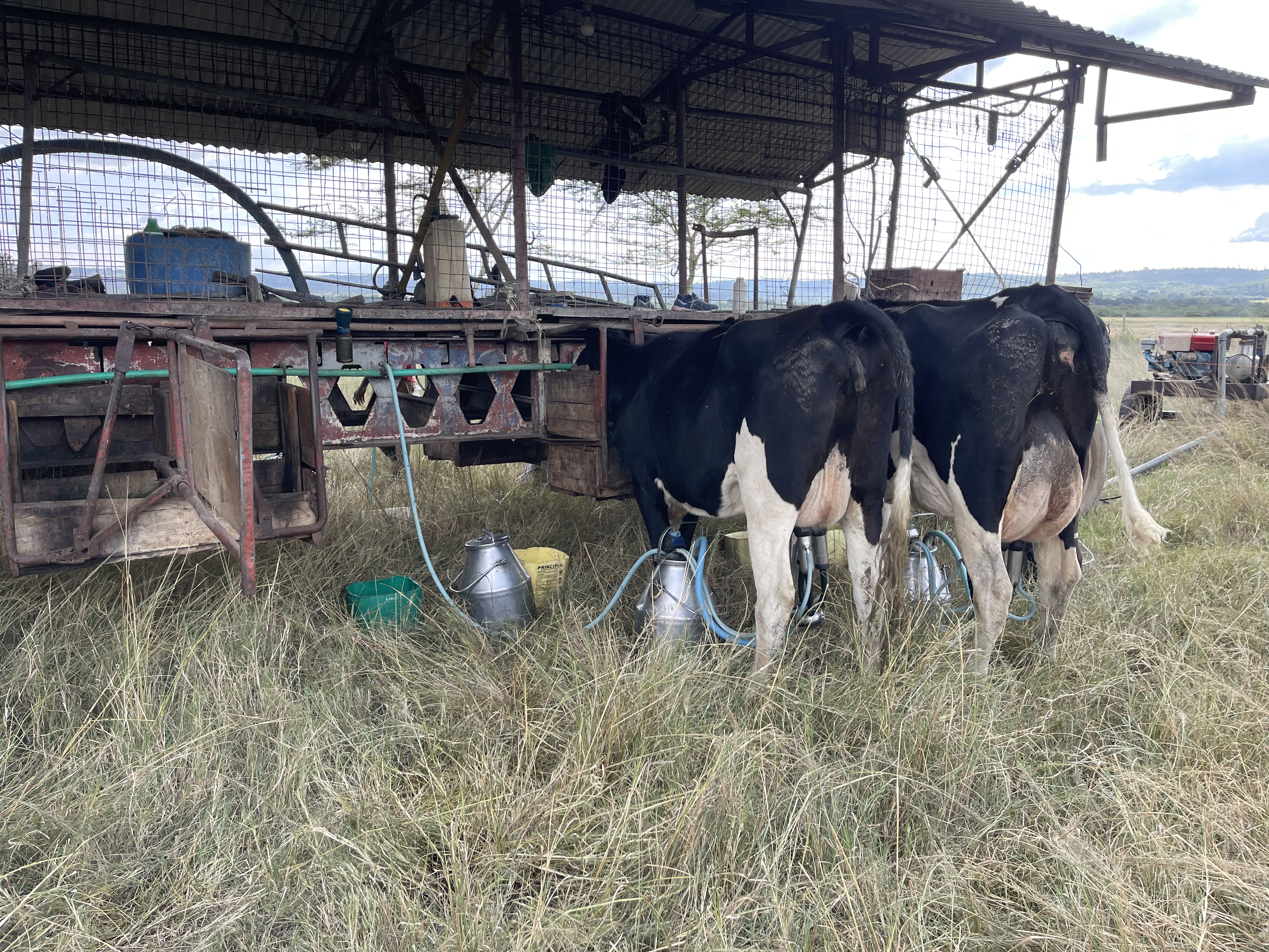 Another very unique thing we got to experience was milking time at a dairy that utilized a mobile milking parlor. To say that my mind was blown to see such an operation would be an understatement. Ran by an engine powered generator, this farm milked 450 cows twice a day with this setup. The cows were kept in various groups on pasture and at milking time the parlor was moved to each group. The milk was hauled to a bulk tank in cans via a tractor and wagons.