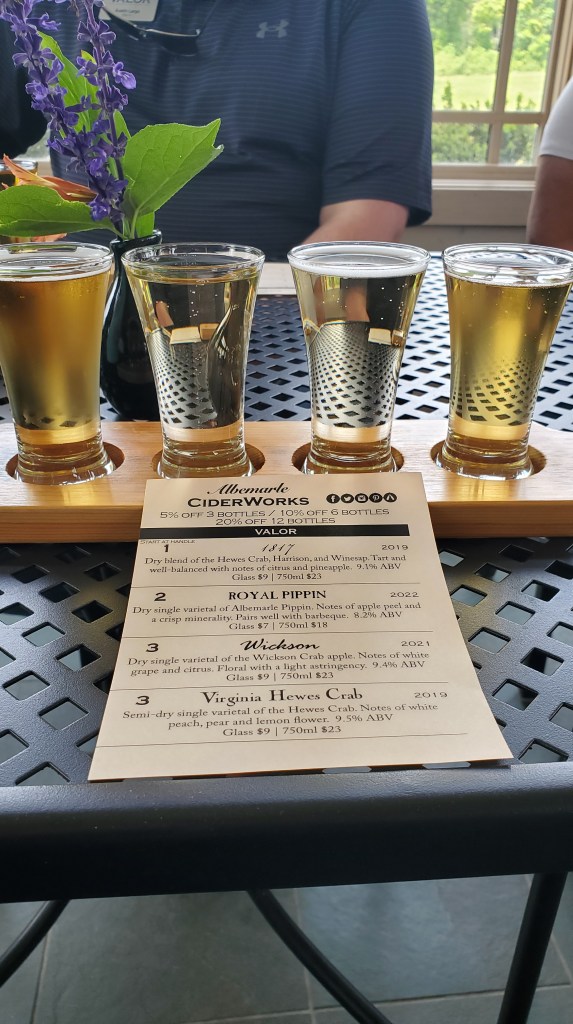 We had the opportunity to visit Virginia Wineworks Extended and learn how Michael Shaps evolved with the industry and created a grape to bottle “one stop shop”, providing a location for growers to custom crush and bottle their own private label brands. This not only allowed them to continue the business but support local producers as well. At Albemarle Ciderworks we learned about a family’s perseverance in the apple industry. There was no money to be made just selling apples and in order to continue this business for their parents and family, they evolved into cider making. They currently have their production facility and tasting room at one location, but what they enjoy the most is teaching the community about the history of growing apples and how important the industry was (and still is) to Virigina.