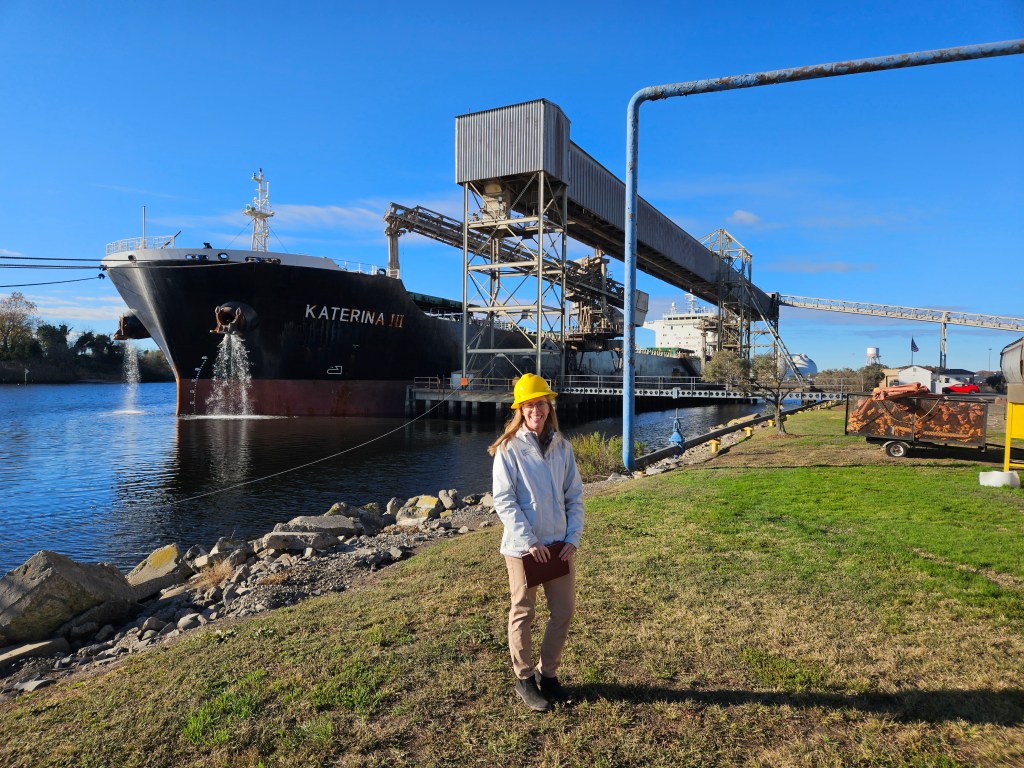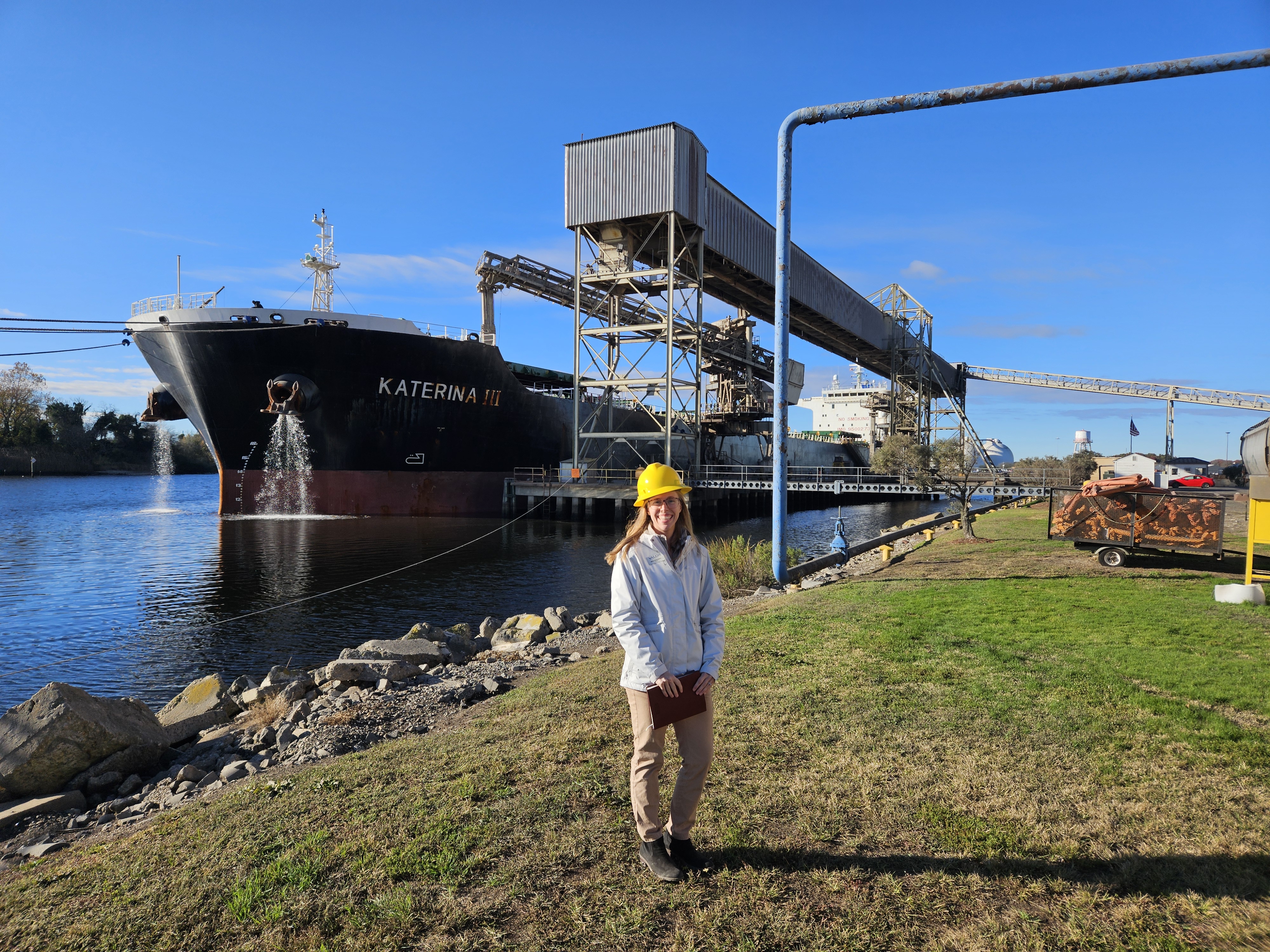 Day three we started bright and early at the Perdue Agribusiness port located on the Elizabeth River to discuss merchandising and exporting. This facility can export around 125 million bushels of soybeans annually as bulk grain or oil. We spoke about the challenges of shipping soybeans including customer needs, bridges, delay charges and of course touched on COVID and huge supply chain disruptions. I could tell Ray, Head of Merchandising, had experience with those more challenging times in the business and was able to offer leadership and guidance to the younger employees who may have just started to see their own supply chain issues and exporting seasons. Also, great leadership is when your employees show up early on a Saturday morning happy to help give a tour! A few highlights from this tour were seeing the inner workings of the control panel room and watching a barge being filled with grain. After our class left, we kept track of this barge on its journey across the Atlantic. Now, when I cross the bridges over the Elizabeth River and see the Perdue port, I have a new perspective; something that seemed mundane and hidden, I now see as another piece of the puzzle to feeding and providing for the world.