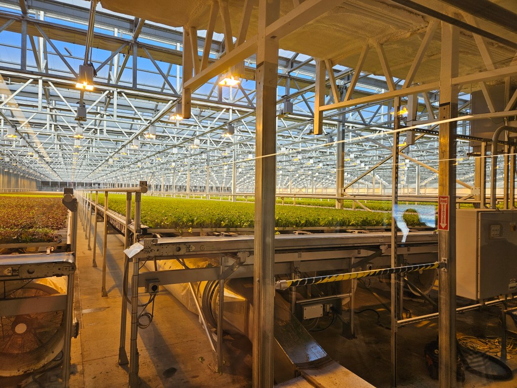 Aside from focusing on government, our cohort was able to visit with local business owners to learn about value-added products and even see a controlled environment agriculture (CEA) facility. On our way to the CEA, we traveled down a secluded side road to what I would have mistook as a regular warehouse if not for the greenhouses connected to the back. I had never heard of this company, Greenswell Growers, but they have a following- every person in our cohort who has tasted their delicious lettuce loves it. And, I can tell from the enthusiasm of the CEO that he loves it, too! As we thought about solar during our trip, I tried to imagine solar as a part of this enterprise- using existing infrastructures to house solar panels. However, solar and crops compete for the same resource- sun. Seeing and understanding automated growing systems was fascinating. These are becoming more prevalent in the Commonwealth, and I think about how they’re able to provide a vast amount of food on a smaller footprint, but I also wondered about the inputs and any environmental impacts or demands these facilities have. Greenswell can recycle their leaf waste and water to create a high and steady volume of produce for the region.