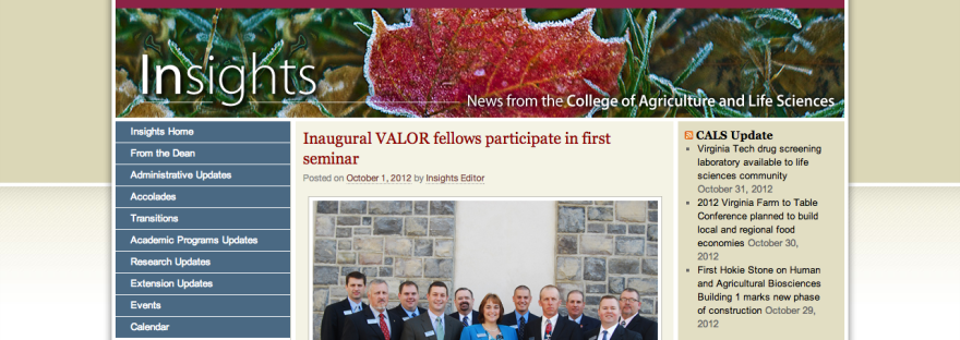 The inaugural fellows of the Virginia Agriculture Leaders Obtaining results (VALOR) program participated in their first of 12 seminars in September in Blacksburg, kicking off the beginning of a two-year journey through leadership development, team building, advocacy training, exploration of industry issues, and stakeholder networking. The program’s eleven members were chosen from among peers across the… Continue reading Reblogged: Inaugural VALOR fellows participate in first seminar
